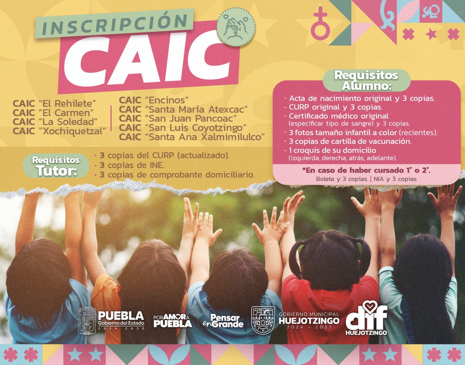 El Gobierno Municipal de Huejotzingo, en coordinación con el DIF municipal y el Gobierno del Estado de Puebla, anunció la apertura de inscripciones para los Centros de Asistencia Infantil Comunitarios (CAIC) en diversas sedes de la región.