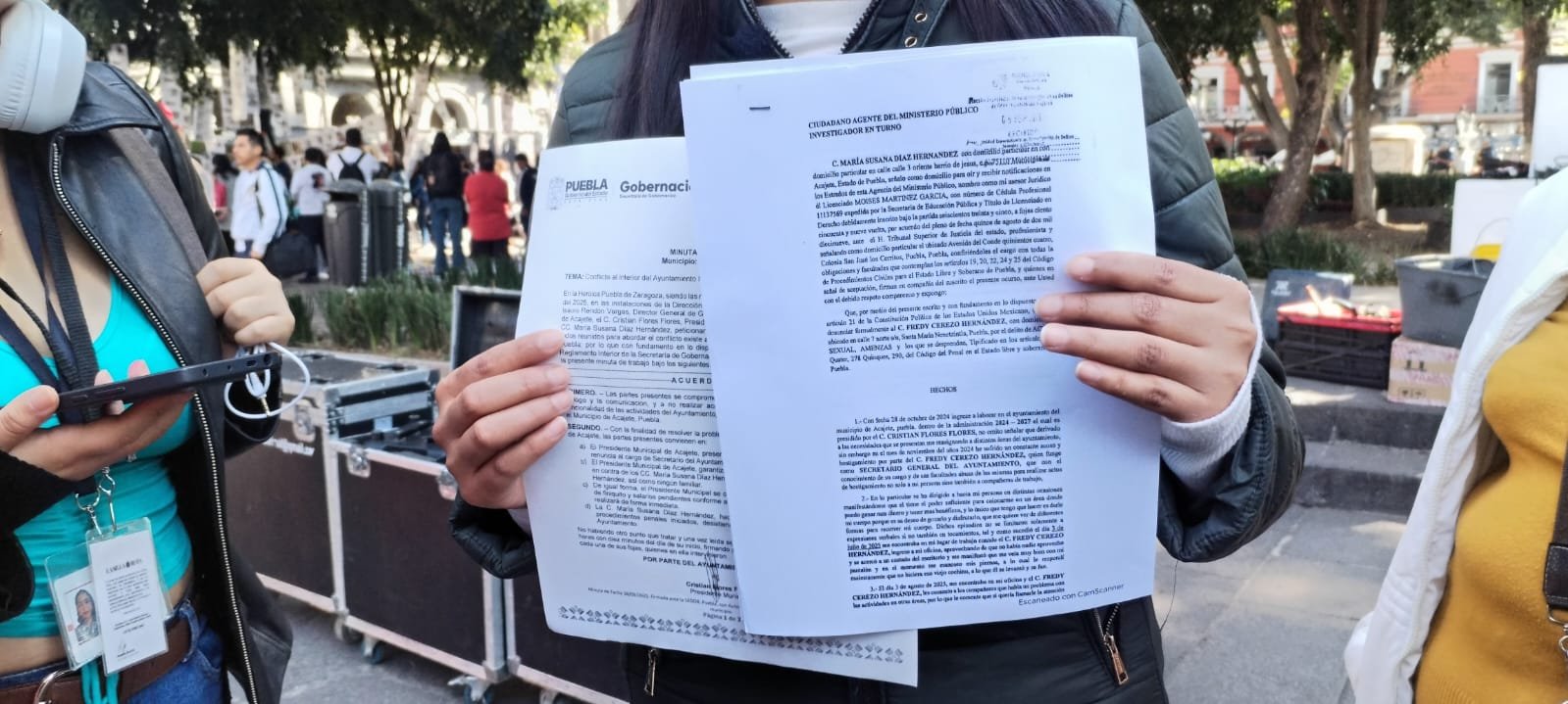 “El pasado 28 de octubre de 2024 ingresé a laborar en el Ayuntamiento del municipio de Acajete, dentro de la administración 2024-2027 el cual es presidido por Cristian Flores Flores, fue en el mes de noviembre del mismo año que constantemente sufrí acoso y hostigamiento por parte de Fredy Cerezo Hernández quien fungía como secretario General del Ayuntamiento y aprovechándose de su cargo, abusaba de sus facultades para realizar actos de hostigamiento no sólo a mi persona, sino también a otras compañeras de trabajo.