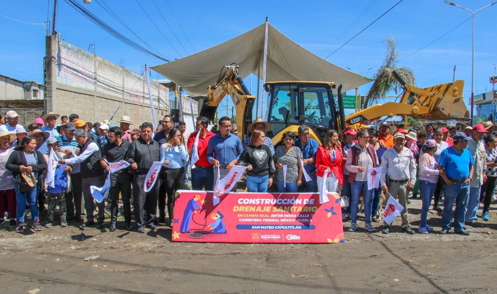 Después de una década de espera, los habitantes de San Mateo Capultitlán celebraron el arranque de la obra de drenaje sanitario, encabezada por el presidente municipal de Huejotzingo, Roberto Solís Valles, acompañado de la presidenta honoraria del SMDIF, Shamy Spezia.
