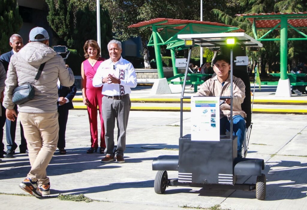 Huejotzingo, Pue.- Estudiantes de la carrera de Ingeniería Mecatrónica de la Universidad Tecnológica de Huejotzingo (UTH) presentaron al secretario de Educación Pública estatal, Manuel Viveros Narciso, el proyecto Solarix One, un prototipo de vehículo eléctrico solar con un diseño innovador para impulsar el desarrollo tecnológico.