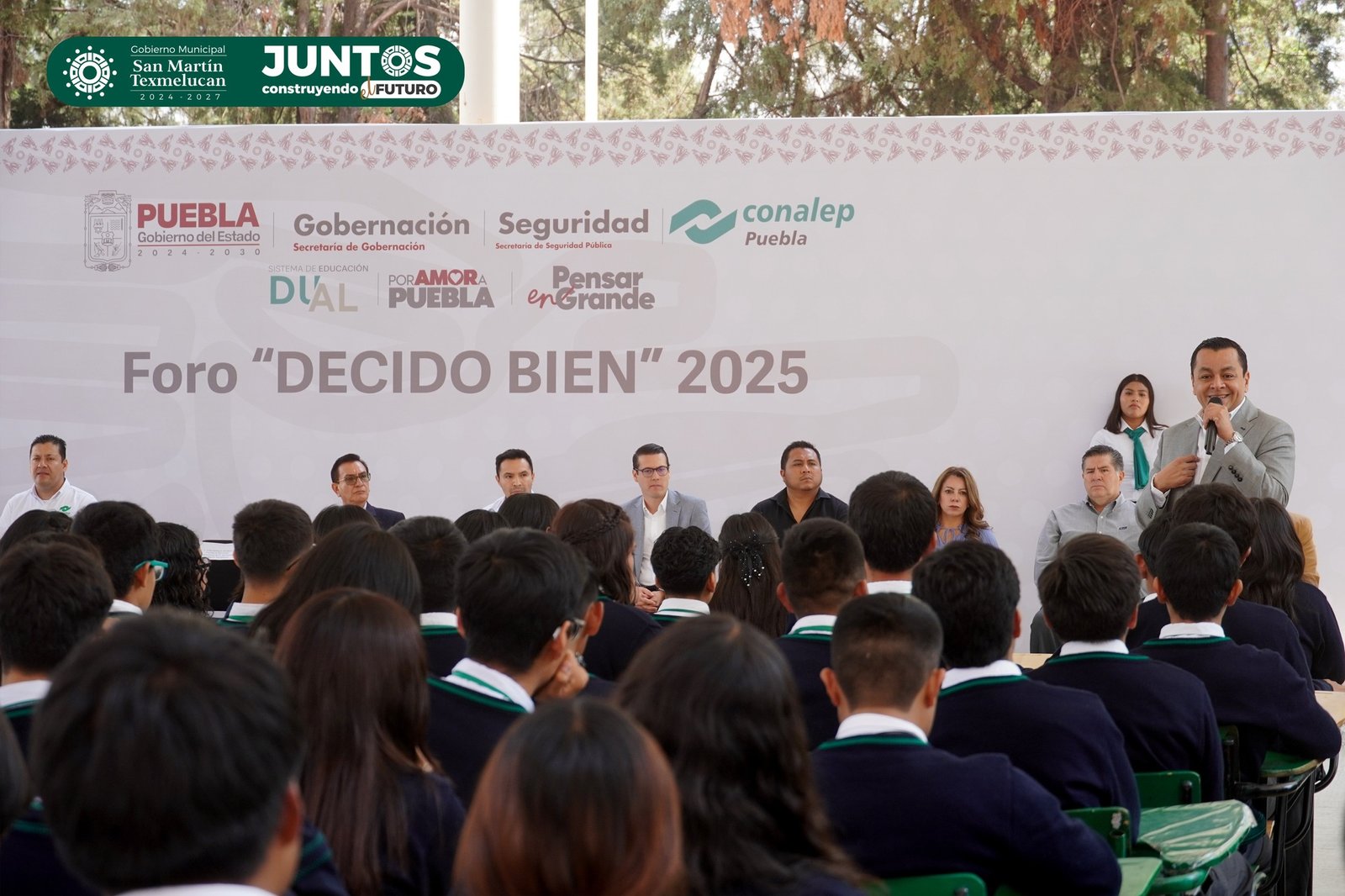 El presidente municipal de San Martín Texmelucan, Juan Manuel Alonso participó en el foro “Decido Bien”, realizado en el plantel Conalep de San Martín Texmelucan, con el objetivo de promover entre estudiantes la toma de decisiones responsables y alejadas de las adicciones.