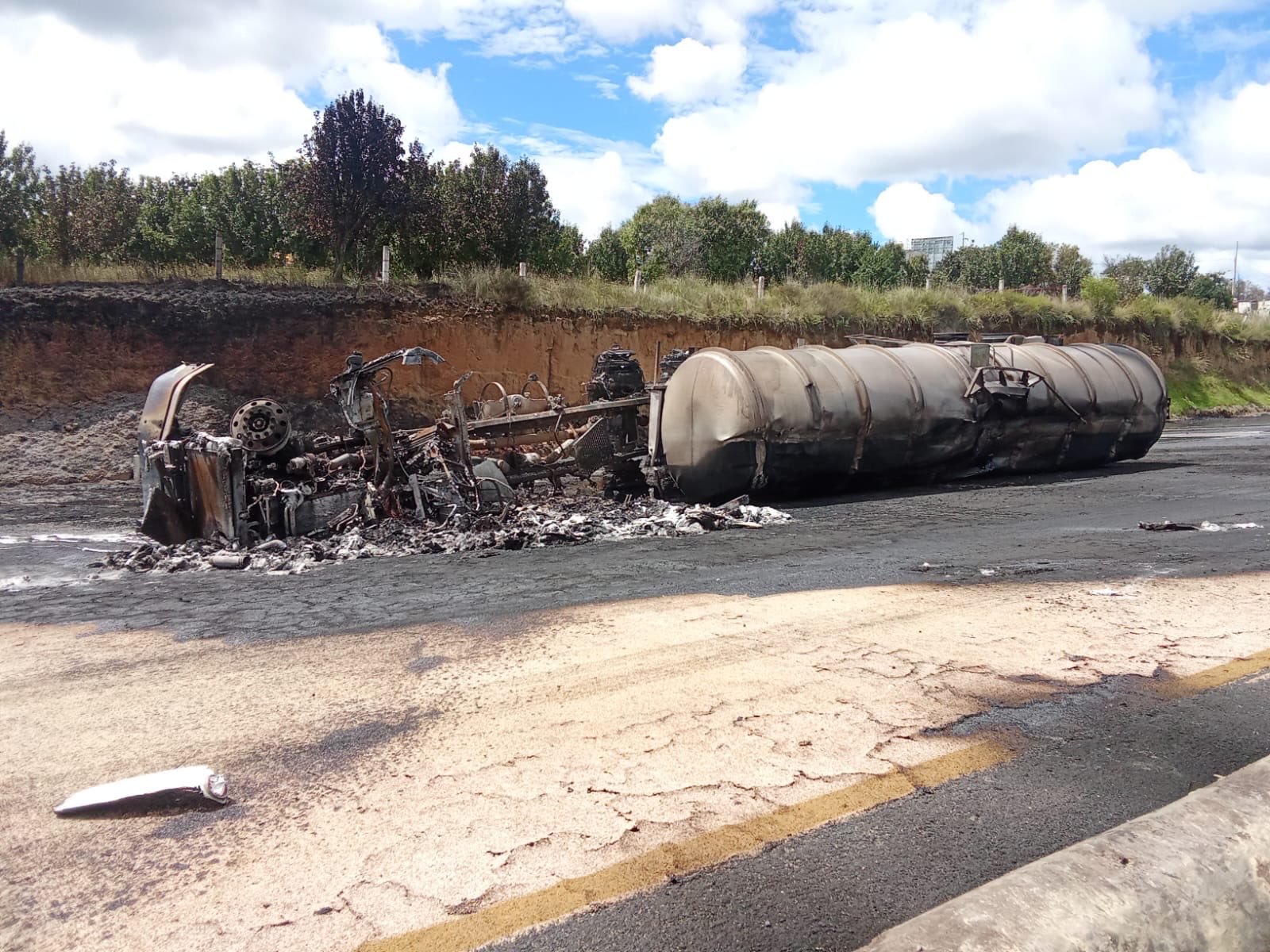El Gobierno del Estado de Puebla exhorta a la población a mantener la calma y seguir las indicaciones de las autoridades de seguridad y protección civil, mientras los equipos especializados realizan labores de enfriamiento y limpieza para restablecer la circulación de manera segura.