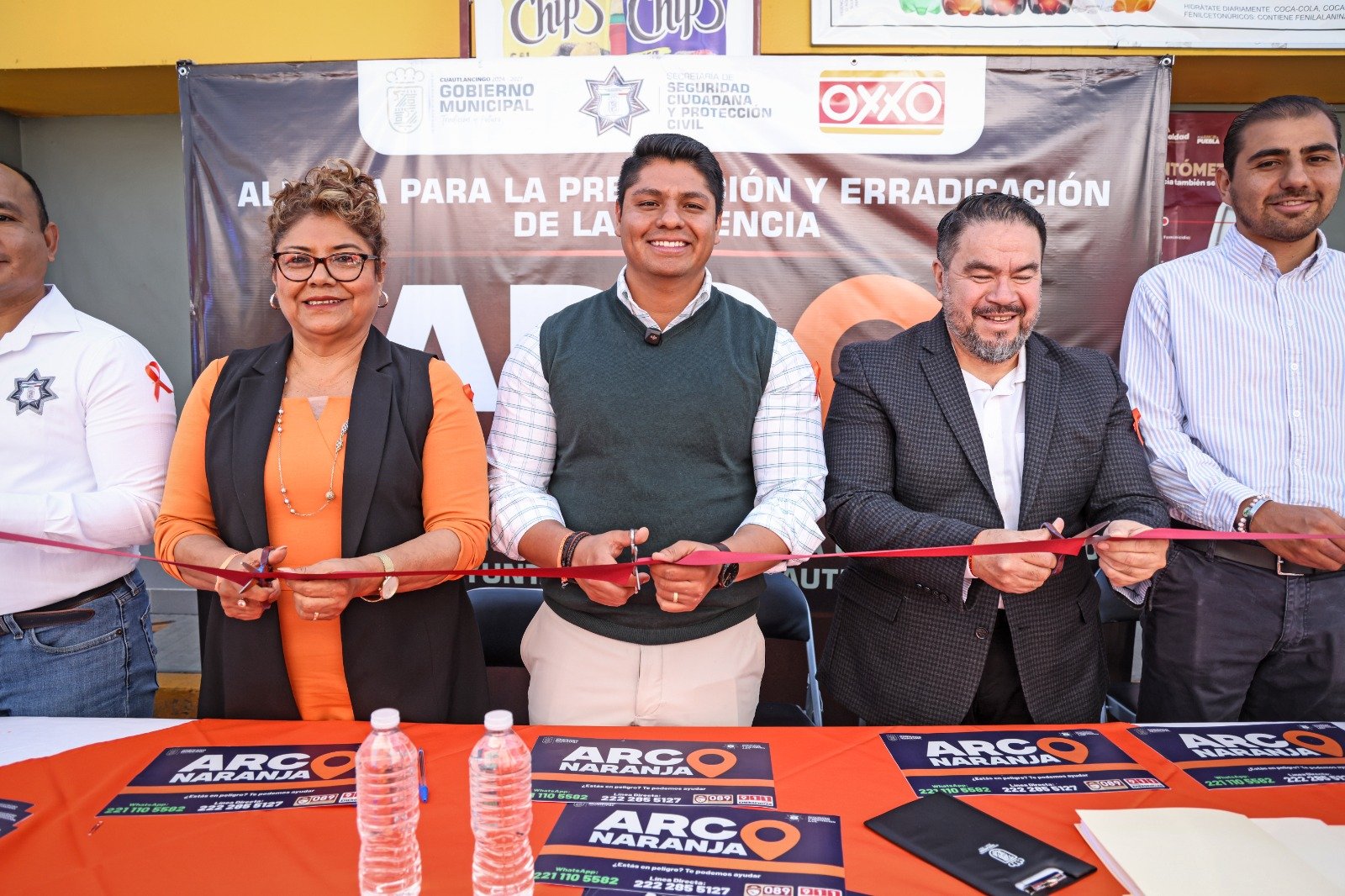 CUAUTLANCINGO, PUE. Para reforzar el combate contra la violencia hacia las mujeres en Cuautlancingo, Omar Muñoz, presidente municipal, firmó un convenio de colaboración con la cadena comercial Oxxo, como parte del programa “Arco Naranja” implementado en la demarcación, para disminuir las cifras que lo ubican dentro de los 50 municipios con alerta de violencia de género en el estado.