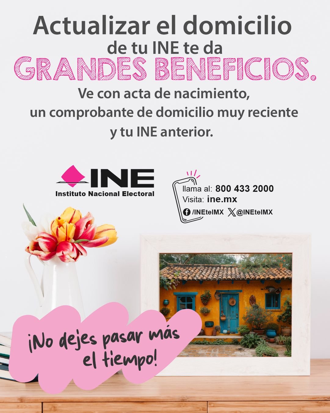 El INE convoca a la ciudadanía que ha cambiado de domicilio y que aún no notifica su nueva dirección en su Credencial para Votar, para que acudan a cualquier Módulo de Atención Ciudadana y obtenga algunos beneficios personales.