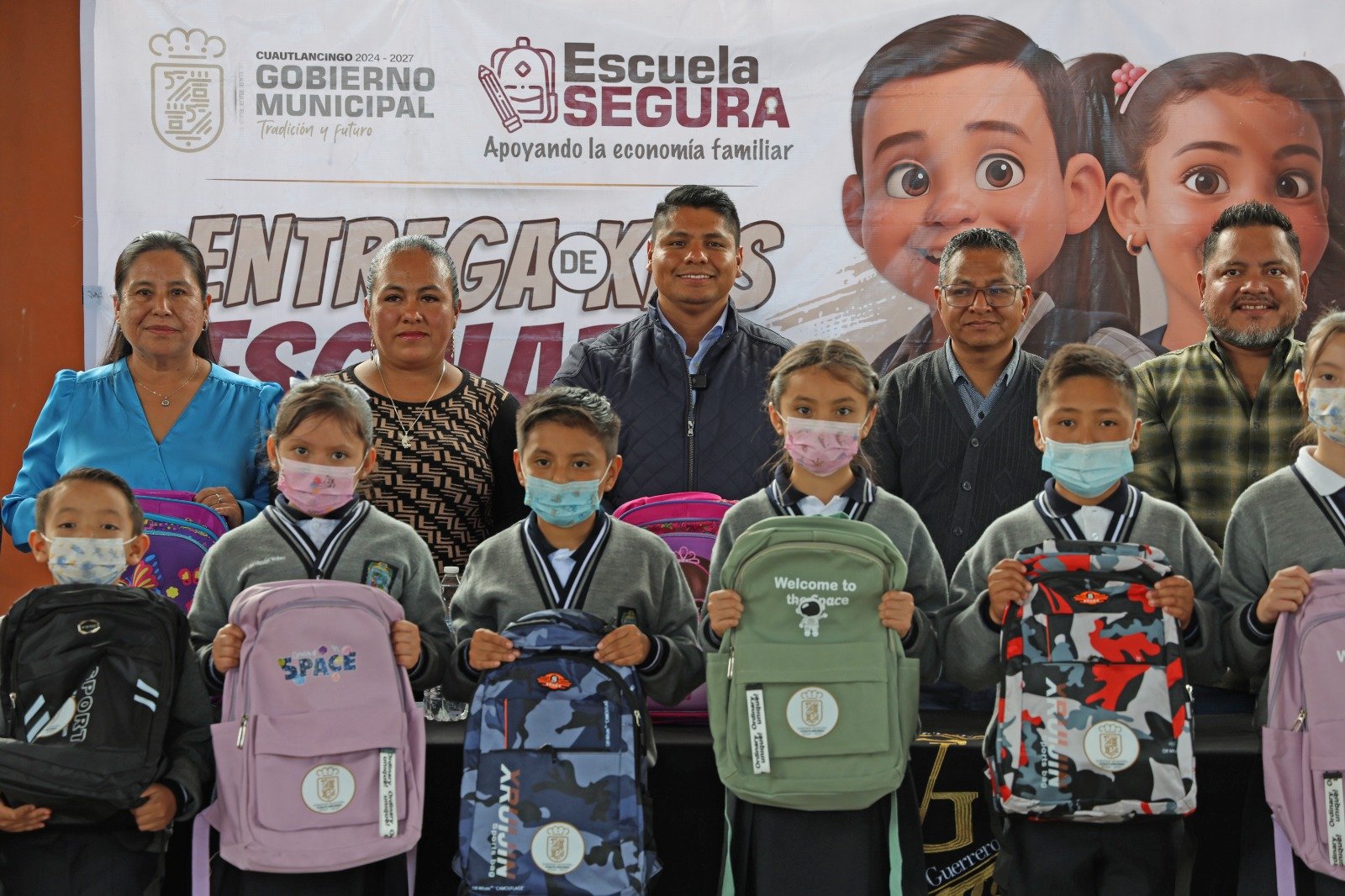 CUAUTLANCINGO, PUE. Omar Muñoz, Presidente Municipal de Cuautlancingo, acudió a las primarias “Emiliano Zapata”, “Fuerte de Guadalupe” y “Vicente Guerrero”, para continuar con la entrega de kits escolares del programa “Escuela Segura”.