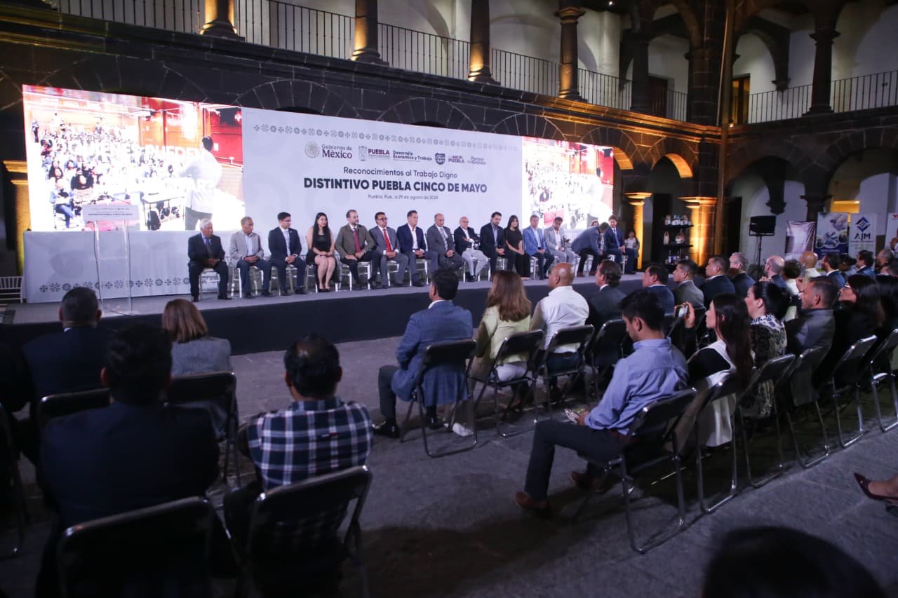La administración estatal, a través de la Secretaría de Desarrollo Económico y Trabajo, entregó el Distintivo Puebla Cinco de Mayo a 50 empresas comprometidas con el trabajo digno
